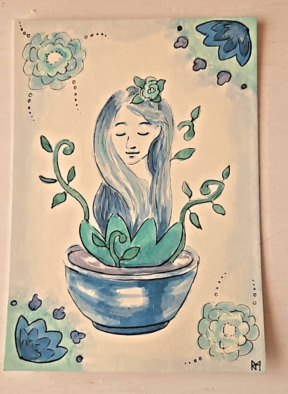 ručně malovaná pohlednice